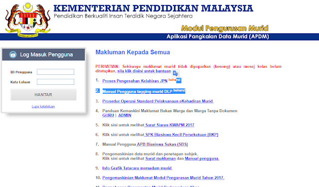 Login Apdm Ekehadiran Aplikasi Pangkalan Data Murid Skoloh