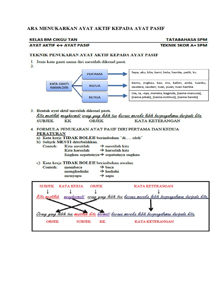 Ara Menukarkan Ayat Aktif Kepada Ayat Pasif Docx