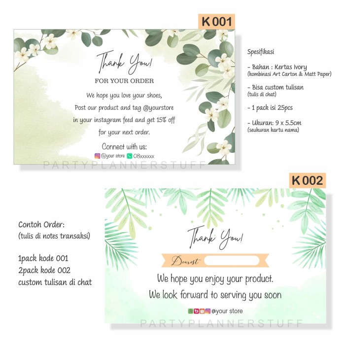 Jual Kartu Ucapan Terima Kasih Olshop Thank You Card Online Shop Custom Kab Sleman Party Planner Stuff Tokopedia