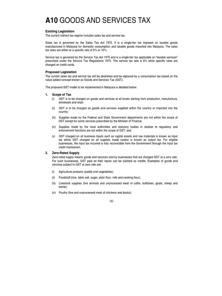 A10 Goods And Services Tax Existing Legislation Value Added Tax Taxes